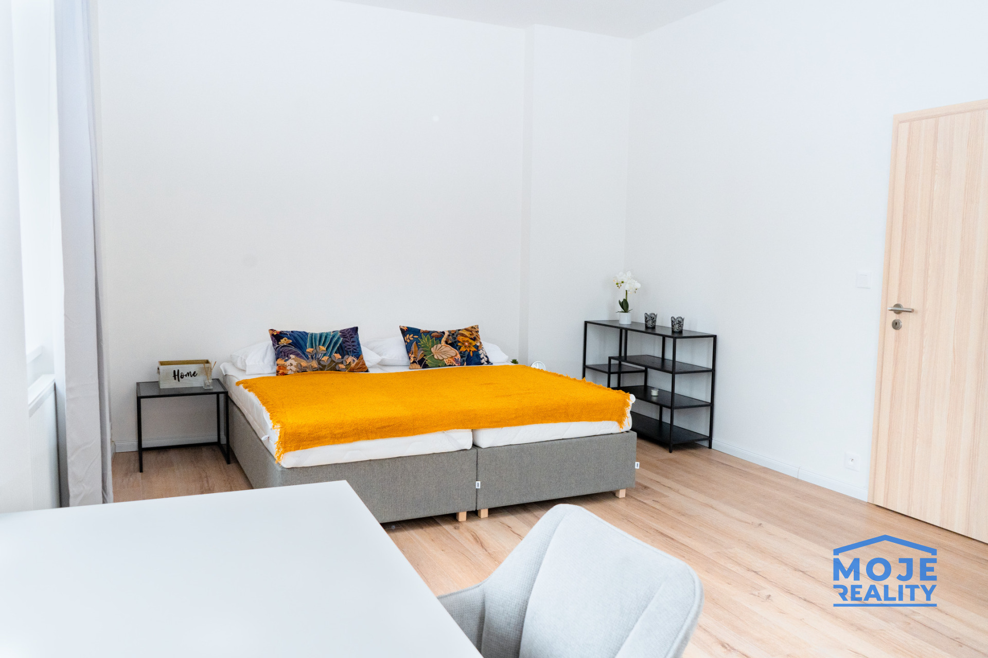 Nabízíme k pronájmu byt o velikosti 2+KK 44,51 m² v centru Plzně. Bytová jednotka se nachází ve 2. patře cihlového domu s výtahem a je po celkové rekonstrukci. Nachází se 2 minuty chůzí od OC Plaza a asi 5 minut od náměstí v ulici Kotkova. Po vstupu do zádveří se po pravé straně nachází koupelna s toaletou, sprchovým koutem, umyvadlem a závěsným topením. Z předsíně můžeme dále vstoupit do kuchyně, která je vybavena kuchyňskou linkou se spotřebiči, tzn. mikrovlnnou troubou, digestoří, varnou deskou, lednicí s mrazákem a pračkou. Z kuchyně dále vstupujeme do prostorného pokoje, který může být po domluvě vybaven za příplatek k nájemnému. Podlahy bytu jsou pokryté vinylem a dlažbou. Teplo v domě je zajištěno vlastním kotlem a teplou vodu zajišťuje el. bojler. Byt se pronajímá vybaven za poplatek 2 500 Kč