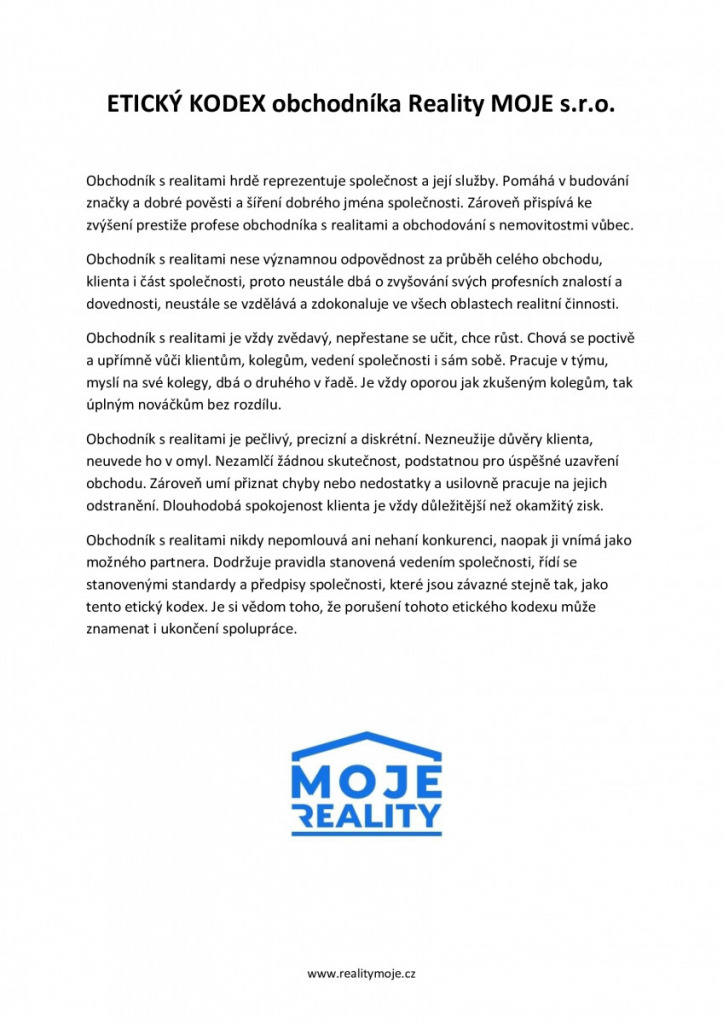 Obchodník s realitami nikdy nepomlouvá ani nehaní konkurenci, naopak ji vnímá jako možného partnera. Dodržuje pravidla stanovená vedením společnosti, řídí se stanovenými standardy a předpisy společnosti, které jsou závazné stejně tak, jako tento etický kodex. Je si vědom toho, že porušení tohoto etického kodexu může znamenat i ukončení spolupráce.