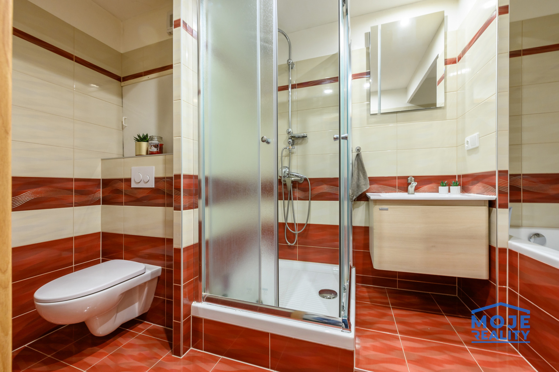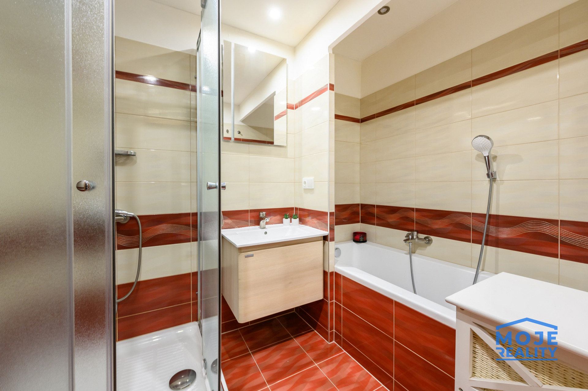 Byt se skládá z obývacího pokoje, samostatné kuchyně, ložnice, dětského pokoje, prostorné chodby, technické místnosti s šatnou a koupelny. Koupelna je vybavena vanou, sprchovým koutem a WC, což zajišťuje vysoký komfort každodenního užívání.