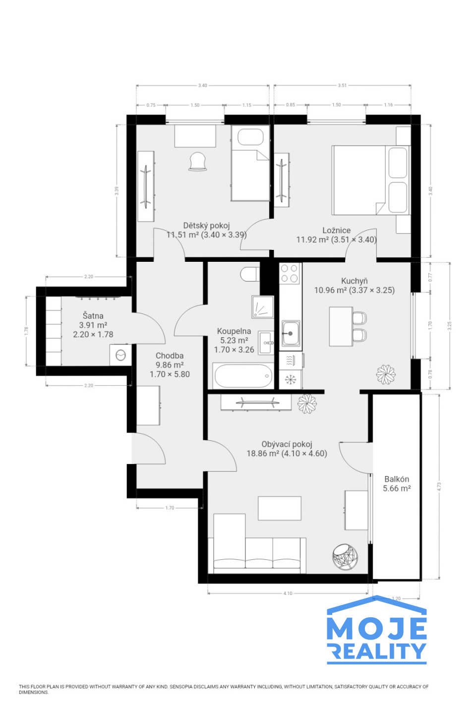 Dispozice bytu je praktická a nabízí dostatek úložného prostoru i soukromí pro všechny členy domácnosti. Byt je vhodný jak k okamžitému nastěhování, tak i jako investice.