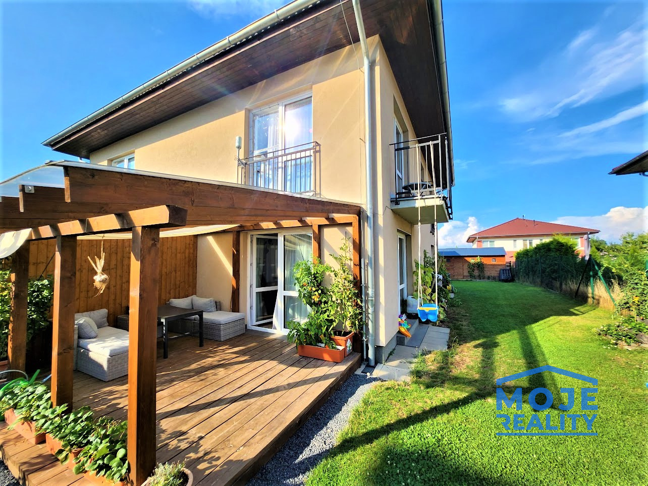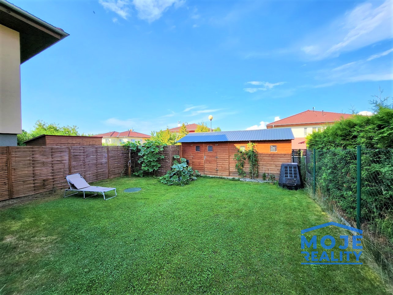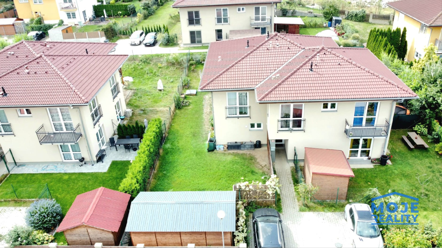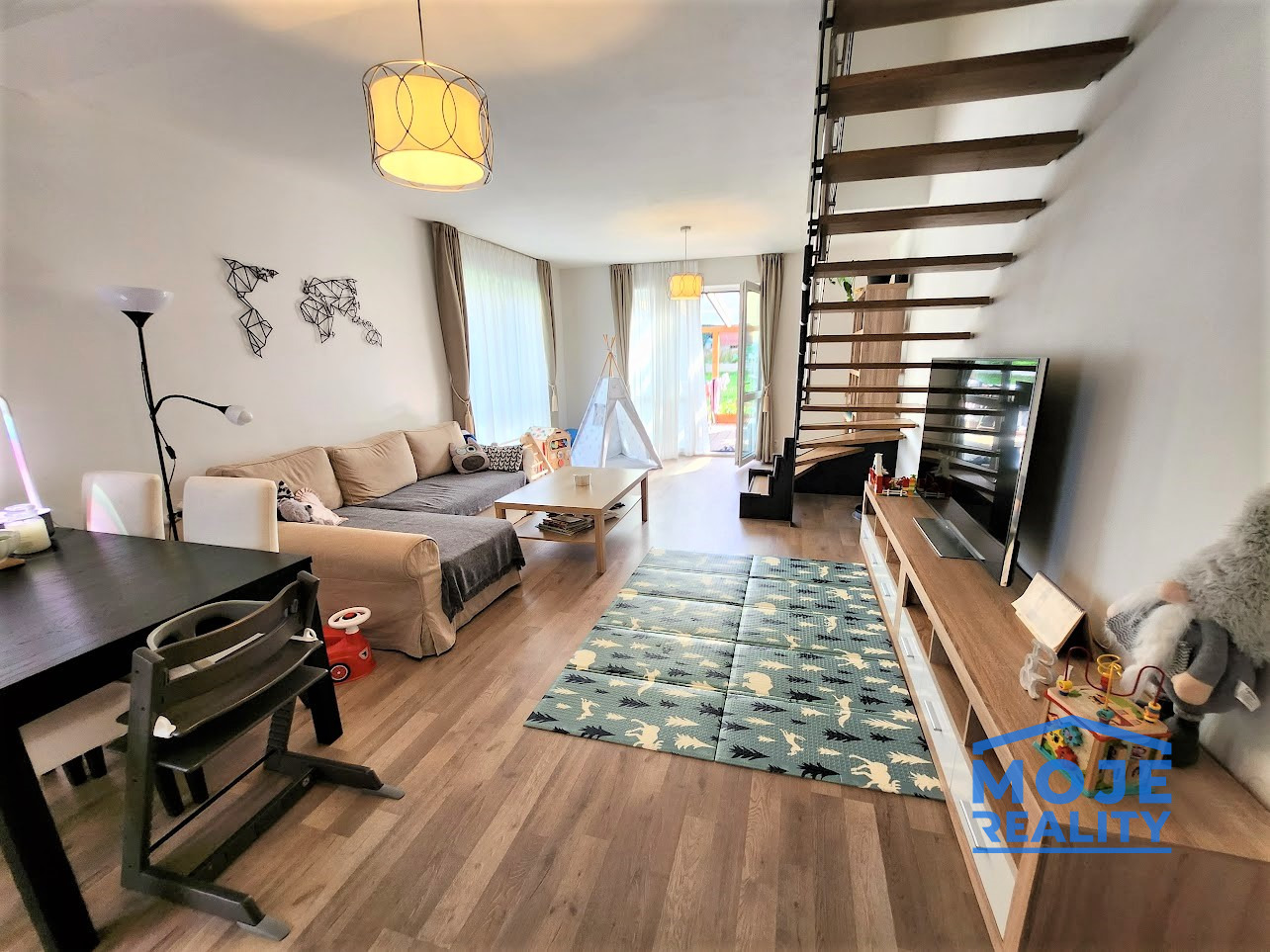 Exkluzivně nabízíme k prodeji krásný a slunný byt 3+kk ve vyhledávané lokalitě Praha-Západ-Velké Přílepy s krytou terasou a zahradou a kompletním vybavením. Plocha bytu je 90m2 plus terasa 25m2 plus zahrada 250m2 a parkovací stání před domem. Byt se rozkládá ve dvou podlažích a přesné dispozice bytu tvoří v přízemí chodbu, samostatnou toaletu, prostorný obývací pokoj s designovým schodištěm a kuchyňským koutem (včetně spotřebičů). V patře naleznete chodbu, ložnici, dětský pokoj a koupelnu s druhým WC a jako bonus je v podkroví půda, která slouží jako úložný prostor. Absolutní dominantou je krásná a velká zahrada s krytou terasou ideální pro relaxaci v teplých letních večerech. Na pozemku dále naleznete 18m2 zahradní domek, který pojme nesčetné množství zahradní a sportovní techniky. Byt je vybaven ve vysokém standardu zahrnující např. bezpečnostní vstupní dveře v bezp. tř. II, kvalitní vinylové podlahy, interiérové foliované dveře s obložkovými zárubněmi, vícekomorová plastová okna. Tato nemovitost slučuje všechny nezbytné vlastnosti Vašich nároků na kvalitní bydlení různých věkových kategorií. Velké Přílepy nabízí výbornou občanskou vybavenost: obchody, restaurace, pošta, mateřská a základní škola a mnoho dalšího. Perfektní dopravní dostupnost, zastávka autobusu kousek od domu. V rámci našich služeb Vám rádi pomůžeme s výběrem a sjednáním vhodné hypotéky Pro více informací a prohlídku prosím kontaktujte makléře.