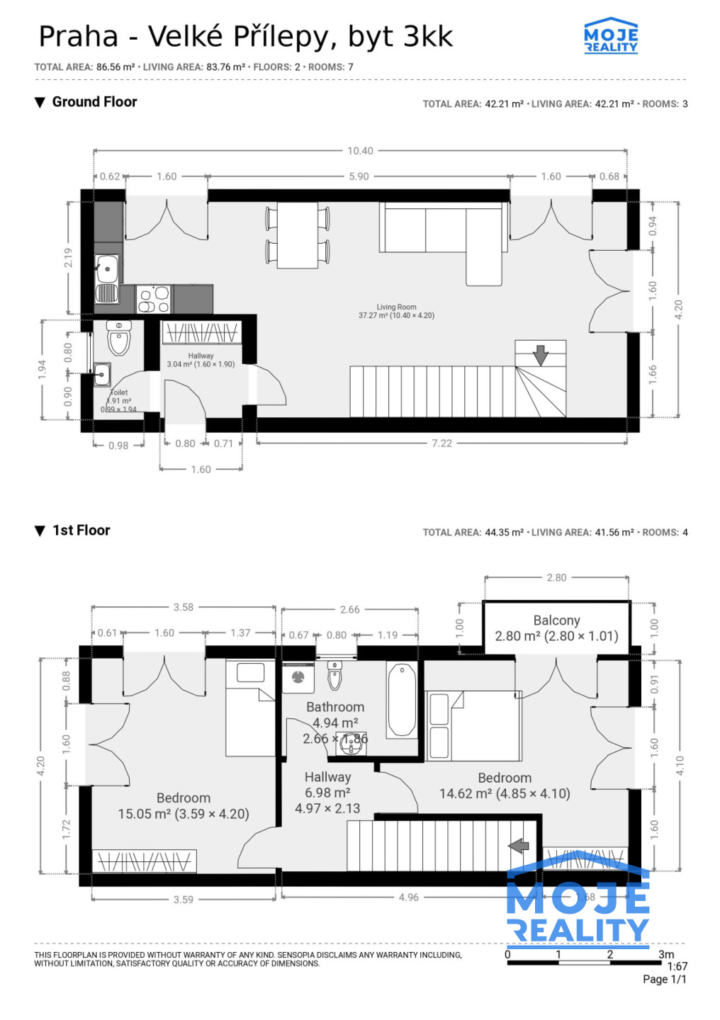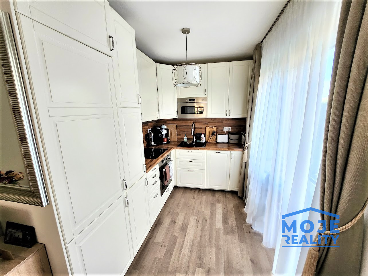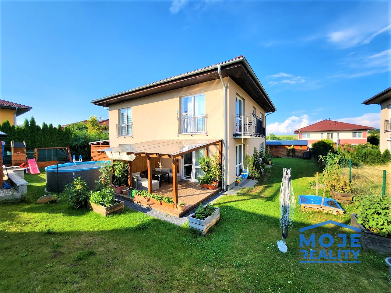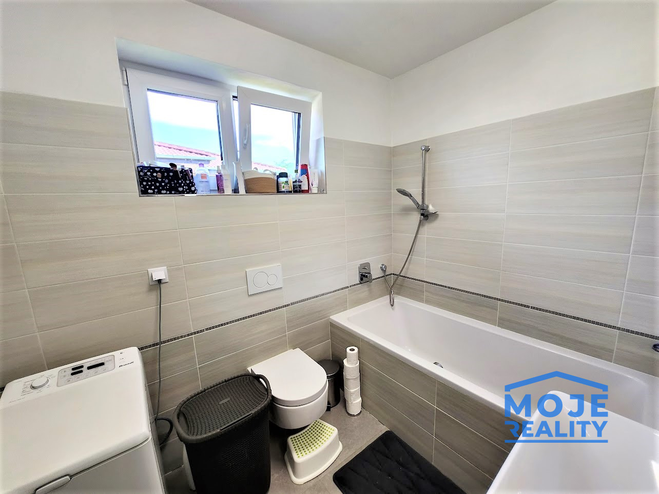 Exkluzivně nabízíme k prodeji krásný a slunný byt 3+kk ve vyhledávané lokalitě Praha-Západ-Velké Přílepy s krytou terasou a zahradou a kompletním vybavením. Plocha bytu je 90m2 plus terasa 25m2 plus zahrada 250m2 a parkovací stání před domem. Byt se rozkládá ve dvou podlažích a přesné dispozice bytu tvoří v přízemí chodbu, samostatnou toaletu, prostorný obývací pokoj s designovým schodištěm a kuchyňským koutem (včetně spotřebičů). V patře naleznete chodbu, ložnici, dětský pokoj a koupelnu s druhým WC a jako bonus je v podkroví půda, která slouží jako úložný prostor. Absolutní dominantou je krásná a velká zahrada s krytou terasou ideální pro relaxaci v teplých letních večerech. Na pozemku dále naleznete 18m2 zahradní domek, který pojme nesčetné množství zahradní a sportovní techniky. Byt je vybaven ve vysokém standardu zahrnující např. bezpečnostní vstupní dveře v bezp. tř. II, kvalitní vinylové podlahy, interiérové foliované dveře s obložkovými zárubněmi, vícekomorová plastová okna. Tato nemovitost slučuje všechny nezbytné vlastnosti Vašich nároků na kvalitní bydlení různých věkových kategorií. Velké Přílepy nabízí výbornou občanskou vybavenost: obchody, restaurace, pošta, mateřská a základní škola a mnoho dalšího. Perfektní dopravní dostupnost, zastávka autobusu kousek od domu. V rámci našich služeb Vám rádi pomůžeme s výběrem a sjednáním vhodné hypotéky Pro více informací a prohlídku prosím kontaktujte makléře.