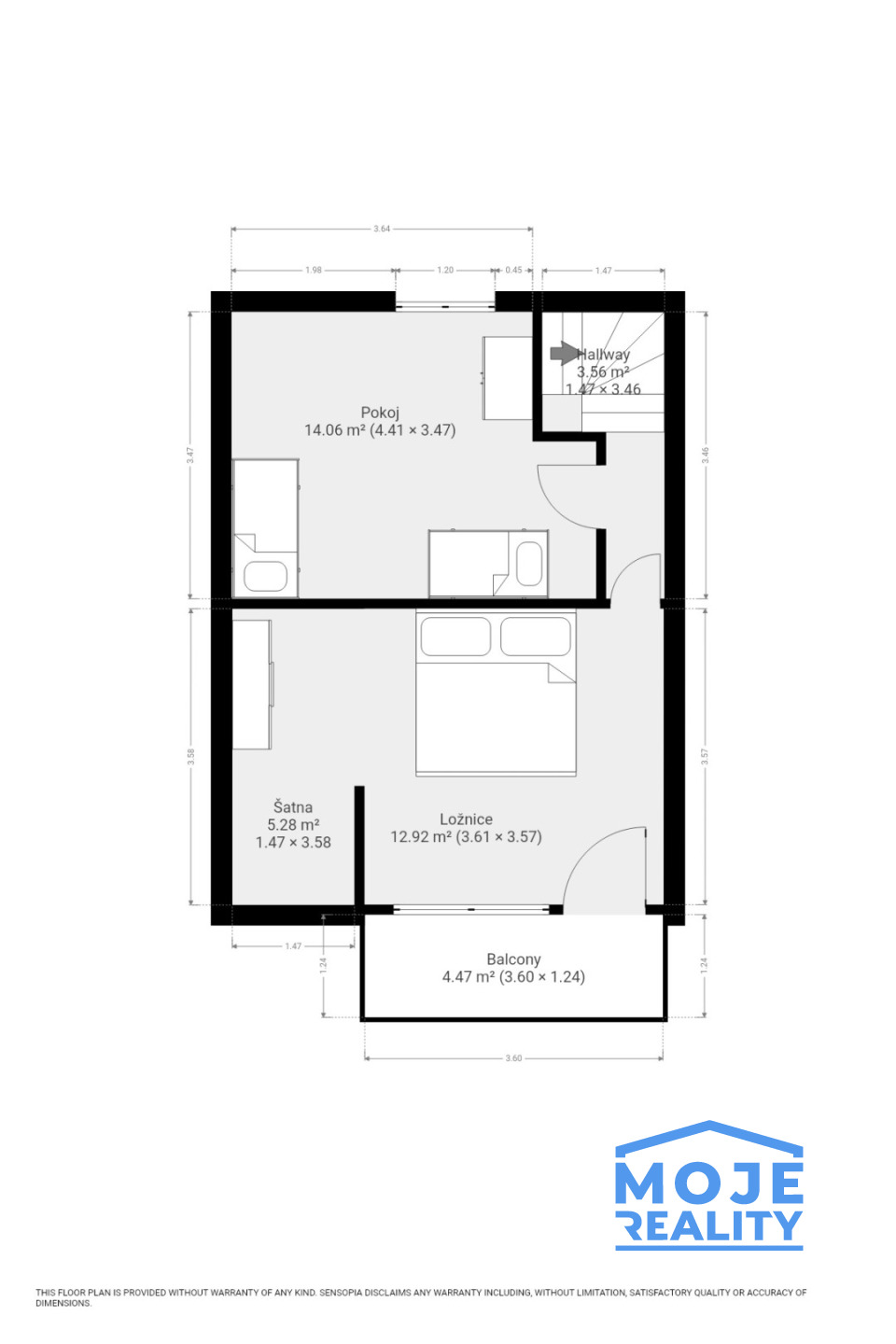 2. patro: ložnice s balkonem, dětský pokoj s přístupem na půdu.
