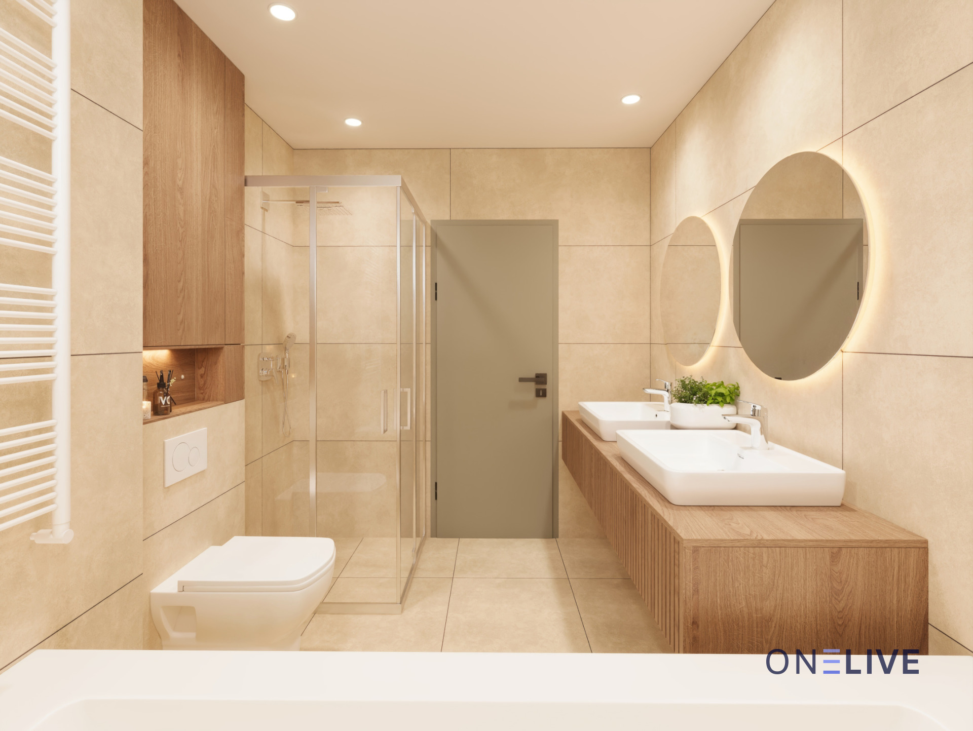 Nabízené dvojdomy s garáží mají podlahovou plochu 107,56 m² a garáž pro jedno vozidlo o velikosti 21,27 m² s možností úložného prostoru, terasu a závětří o celkové výměře 20,20 m² a pozemky o velikosti 303 m² a 343 m². Dispozičně jsou řešeny v 1. nadzemním podlaží obývacím prostorem s kuchyňským koutem a přímým vstupem na terasu, přičemž součástí kuchyňského koutu je také samostatná spíž sloužící jako praktický úložný prostor pro potraviny. Dále se zde nachází koupelna se sprchovým koutem, toaletou, umývátkem a technickým zázemím. Do 2. nadzemního podlaží vede železobetonové schodiště, kde jsou umístěny dva dětské pokoje, ložnice a druhá koupelna s vanou, dvojumyvadlem a toaletou. V první etapě projektu jsou k dispozici pouze dva dvojdomy s garáží.