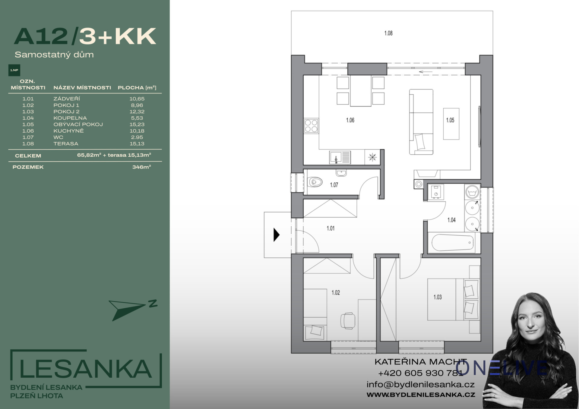 Pro více informací, cenovou nabídku a dostupnost konkrétního domu mě neváhejte kontaktovat. Ráda vám projekt bydlení Lesanka osobně představím.