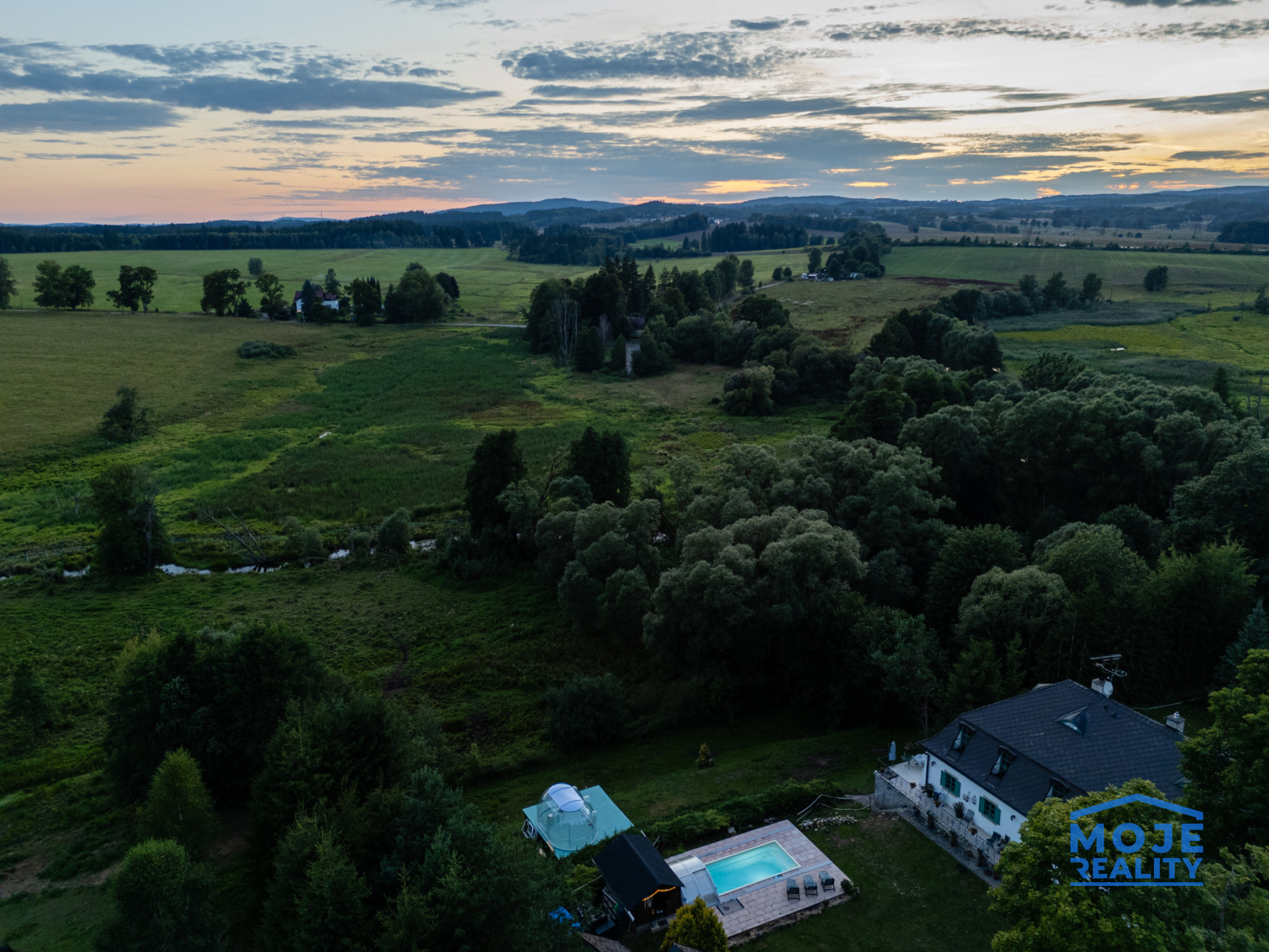 Prodej historické fary – exkluzivní venkovská vila s wellness, bazénem a rozlehlými loukami v srdci Českého lesa